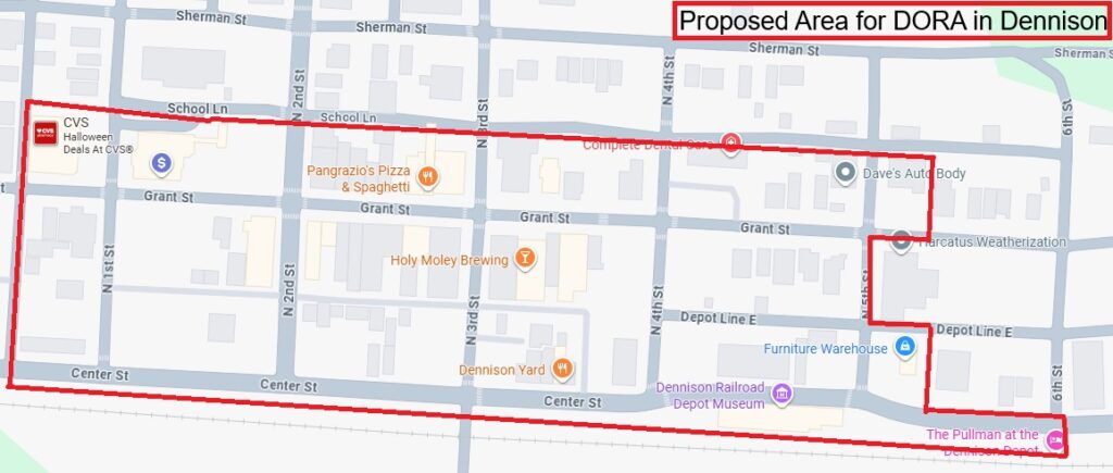The Village of Dennison hears mixed community feedback following a proposal for a designated outdoor drinking area that would encompass the entire downtown.