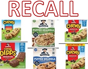 Granola bars and cereals are under a recall issued by the Quaker Oats Company.