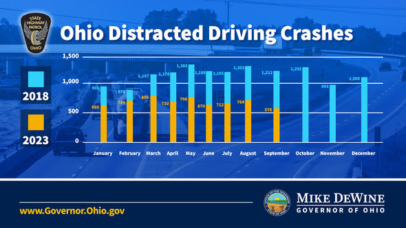 According to Ohio’s Governor, September 2023 saw the lowest number of distracted driving crash in almost six years.
