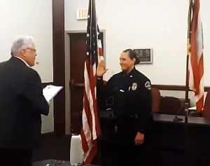 Captain Tessa Pohovey gave her oath of office on Wednesday to become the first female Chief of Police for the City of New Philadelphia.