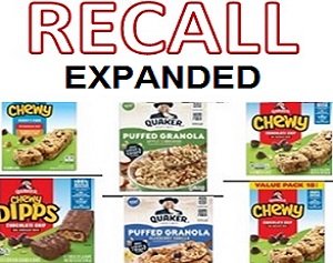 The Quaker Oats Company has announced an expansion of the December granola recall.