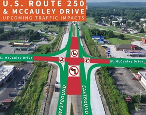 “If you’re traveling through there, you’ll only be able to turn right off of 250 onto McCauley Drive while they complete this work, and no straight through traffic that’s crossing US 250 from either side of McCauley Drive.”