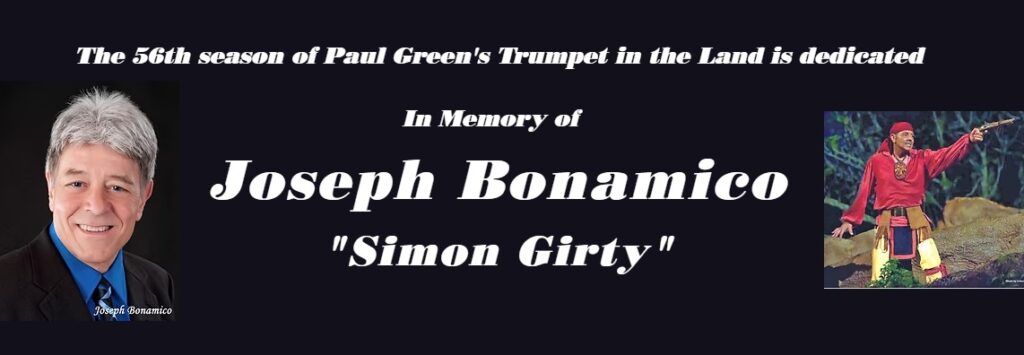 “There will be a dedication to Joe Bonamico, who played Simon Girty for 37 years in Trumpet and also worked for the organization as a director, actor, marketing manager for 42 years.”
