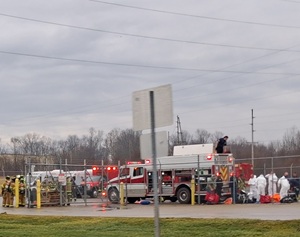 “It was an acid, and it is corrosive so we couldn’t go in with our normal fire gear, and we had to wait until we had hazmat suits so we could enter. That takes a little bit of time because we have to set up different stations. We have to set up a station for the folks to come out and get their hazmat suit washed so they could safely get out of the suit, and we had to have extra folks ready to go in case something would happen to any of those folks.”